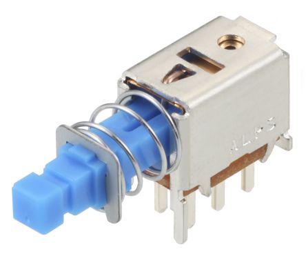 This is Double Pole Double Throw (DPDT) Latching Push Button Switch PCB 30V dc manufactured by Alps Alpine. The manufacturer part number is SPPJ222200. The product is available in pcb configuration. Moreover, the product has a nominal 30v dc voltage rating. The product carries lever actuator. The terminal is a pcb pin type.