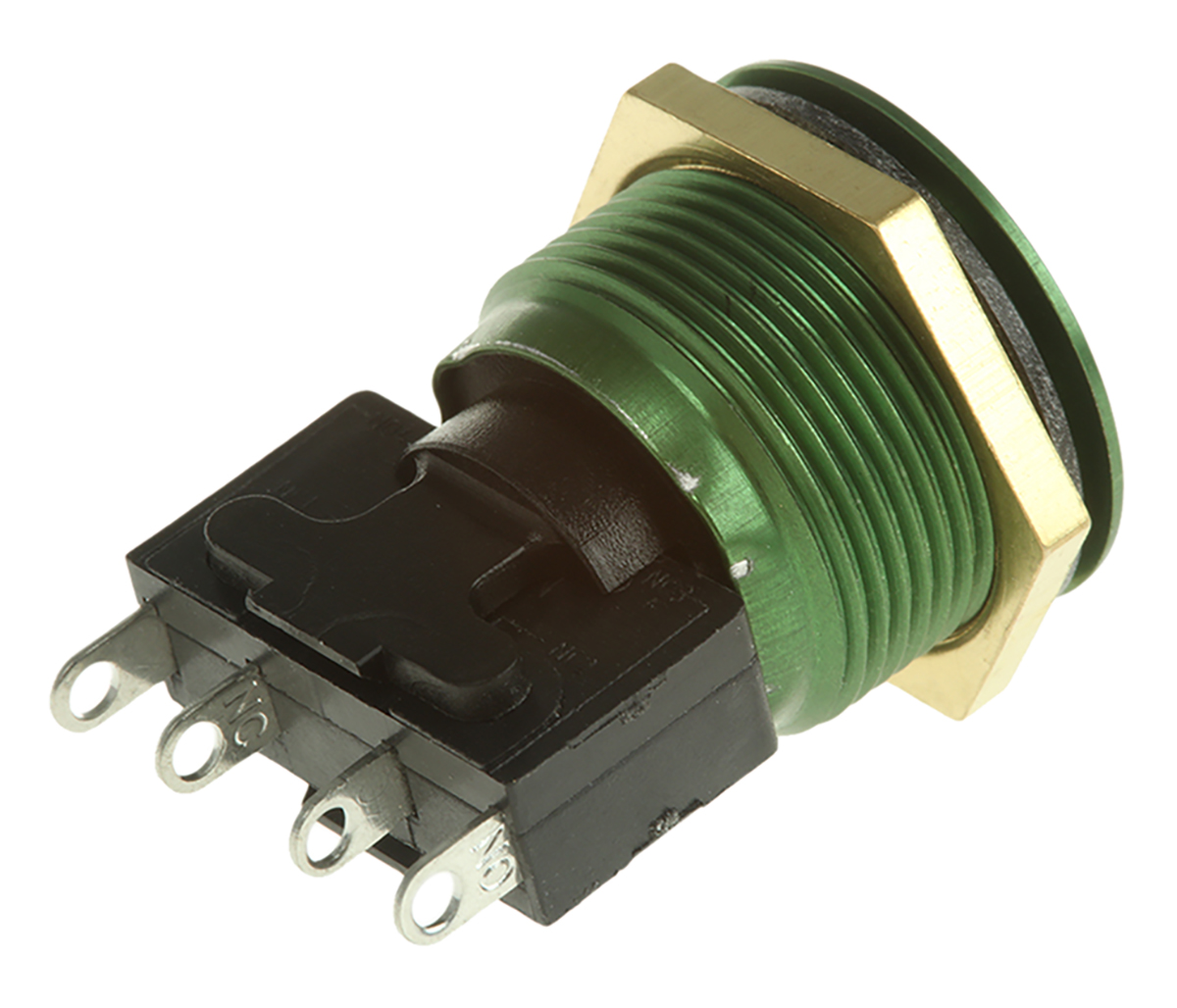 This is ITW 76-95 Single Pole Double Throw (SPDT) Momentary Clear LED Push Button Switch IP67 32 (Dia.)mm Panel Mount 250V manufactured by ITW Switches. The manufacturer part number is 76-9513/4044G. The product is available in panel mount configuration. The product 76-95, is a highly preferred choice for users. Whereas, the minimum operating temperature of the product is -30°c. Moreover, the product has a nominal 250v ac voltage rating. It has a maximum operating temperature of +105°c. The terminal is a solder type. The product is made from sturdy fine silver materials.
