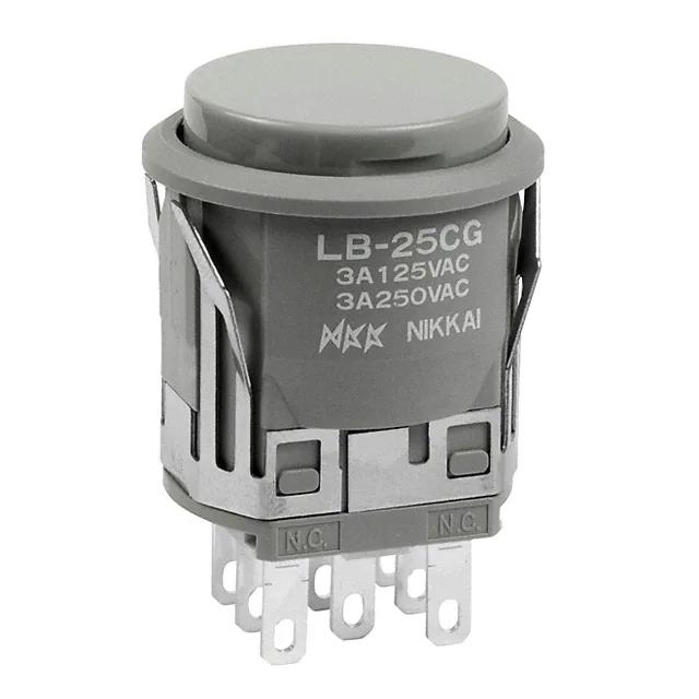 This is manufactured by NKK Switches. The manufacturer part number is LB25CGW01/UC-H. It is assigned with possible HTSUS value of 8536.50.9031. The product is rohs3 compliant. The product offers long-lasting services of 100,000 cycles. Moreover, it has solder, quick connect - 0.110" (2.8mm) terminal style. 30 v of DC voltage rating. The product has -25°c ~ 70°c operating temperature range. It also has a circular - 22.00mm dia dimensional features. The product also provide mechanical stability with 1,000,000 cycles. It comes in standard configuration. The product exhibits 125 v of AC voltage rating. In addition, it is reach unaffected. It is shipped in bulk. It is designed as a on-mom switching function. Its typical moisture sensitivity level is 1 (unlimited). The actuator marking of the product corelates with no marking. It has an integral dpdt circuit. It has a long 26 weeks standard lead time. Additionally, the product's output is 3a (ac/dc) The product is available in panel mount, snap-in configuration. The product lb, is a highly preferred choice for users. It is made from gray. The product carries round, button actuator. Moreover, it corresponds to lb25cgw, a base product number of the product. The product is designated with the ear99 code number