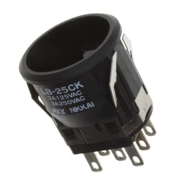 This is manufactured by NKK Switches. The manufacturer part number is LB25CKW01. The product is available in snap-in configuration. Moreover, the product has a nominal 30 v dc, 125 v ac, 250 v ac voltage rating. The product carries cap actuator. The terminal is a quick connect, solder lug type. It is assigned with possible HTSUS value of 8536.50.9031. The product is rohs3 compliant. The product offers long-lasting services of 100,000 cycles. Moreover, it has solder, quick connect - 0.110" (2.8mm) terminal style. 30 v of DC voltage rating. The product has -25°c ~ 70°c operating temperature range. It also has a circular - 22.00mm dia dimensional features. The product also provide mechanical stability with 1,000,000 cycles. It comes in standard configuration. The product exhibits 125 v of AC voltage rating. In addition, it is reach unaffected. It is shipped in bulk. It is designed as a on-mom switching function. Its typical moisture sensitivity level is 1 (unlimited). The actuator marking of the product corelates with no marking. It has an integral dpdt circuit. It has a long 18 weeks standard lead time. Additionally, the product's output is 3a (ac/dc) The product is available in panel mount, snap-in configuration. The product lb, is a highly preferred choice for users. The product carries plunger for cap actuator. Moreover, it corresponds to lb25ckw, a base product number of the product. The product is designated with the ear99 code number