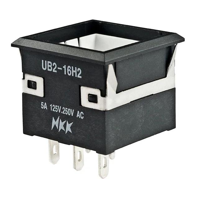 This is manufactured by NKK Switches. The manufacturer part number is UB216KKW016G. It is assigned with possible HTSUS value of 8536.50.9033. The product is rohs3 compliant. The product offers long-lasting services of 10,000 cycles. Moreover, it has solder lug terminal style. 30 v of DC voltage rating. The product has -25°c ~ 50°c operating temperature range. It also has a square - 17.40mm x 17.40mm dimensional features. The product also provide mechanical stability with 200,000 cycles. It comes in standard, illuminated configuration. The product exhibits 125 v of AC voltage rating. In addition, it is reach unaffected. It is supplied with led, blue illumination. It is shipped in bulk. It is designed as a on-on switching function. Its typical moisture sensitivity level is 1 (unlimited). The actuator marking of the product corelates with no marking. It has an integral spdt circuit. It has a long 20 weeks standard lead time. Additionally, the product's output is 5a (ac/dc) The splendid features of the product include sealed - fully. The product is available in panel mount, snap-in configuration. The product ub2, is a highly preferred choice for users. The product carries plunger for cap actuator. The nominal illumination voltage of the product is 2.9 vdc. Moreover, it corresponds to ub216kk, a base product number of the product. The product is designated with the ear99 code number
