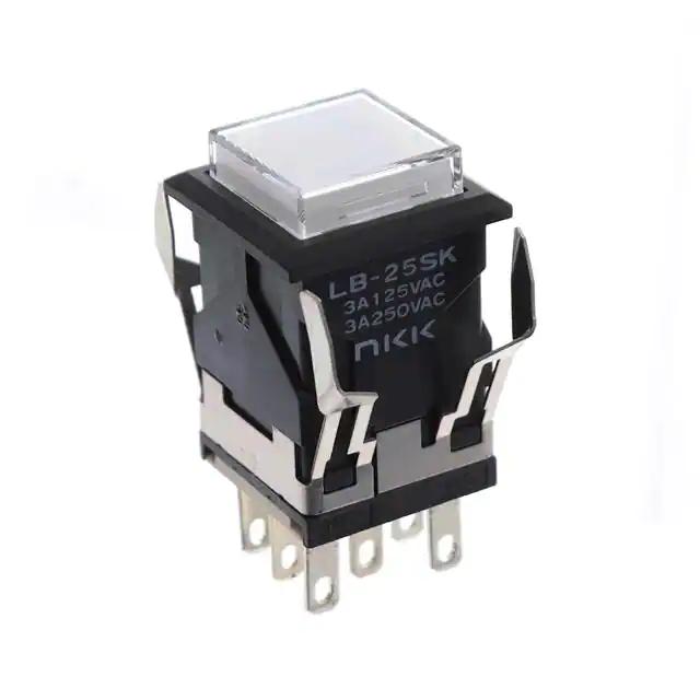 This is manufactured by NKK Switches. The manufacturer part number is LB25SKW01-5C-JB. It is assigned with possible HTSUS value of 8536.50.9031. The product is rohs3 compliant. The product offers long-lasting services of 100,000 cycles. Moreover, it has solder, quick connect - 0.110" (2.8mm) terminal style. 30 v of DC voltage rating. The product has -25°c ~ 50°c operating temperature range. It also has a square - 16.20mm x 16.20mm dimensional features. The product also provide mechanical stability with 1,000,000 cycles. It comes in standard, illuminated configuration. The product exhibits 125 v of AC voltage rating. In addition, it is reach unaffected. It is supplied with led, red illumination. It is shipped in bulk. It is designed as a on-mom switching function. Its typical moisture sensitivity level is 1 (unlimited). The actuator marking of the product corelates with no marking. It has an integral dpdt circuit. It has a long 26 weeks standard lead time. Additionally, the product's output is 3a (ac/dc) The product is available in panel mount, snap-in configuration. The product lb, is a highly preferred choice for users. It is made from clear (white filter/diffuser). The product carries square, button actuator. The nominal illumination voltage of the product is 1.9 vdc. Moreover, it corresponds to lb25skw, a base product number of the product. The product is designated with the ear99 code number