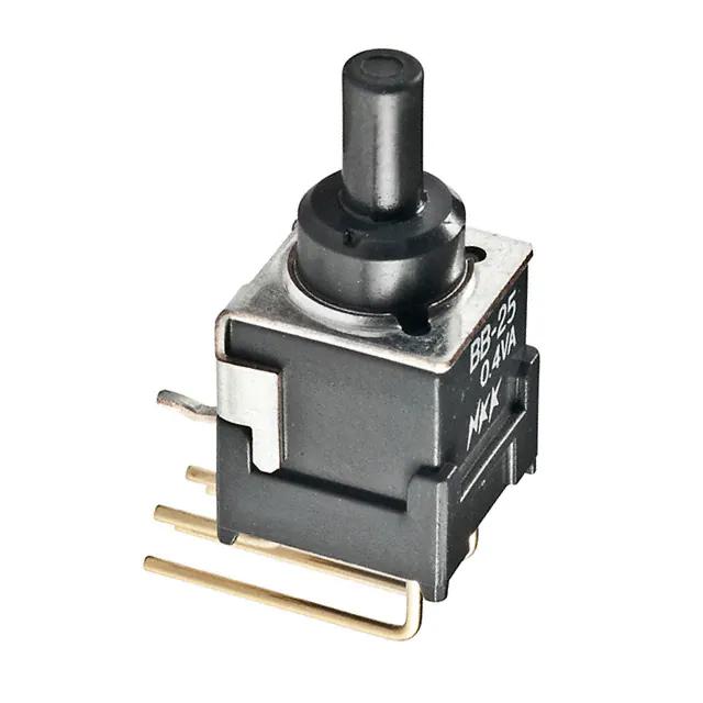 This is manufactured by NKK Switches. The manufacturer part number is BB25AH/M4G. It is assigned with possible HTSUS value of 8536.50.9031. The product is rohs3 compliant. The product offers long-lasting services of 50,000 cycles. Moreover, it has pc pin terminal style. 28 v of DC voltage rating. The product has -30°c ~ 85°c operating temperature range. The product also provide mechanical stability with 50,000 cycles. It comes in standard configuration. The product exhibits 28 v of AC voltage rating. In addition, it is reach unaffected. It is shipped in box. It is designed as a on-mom switching function. Its typical moisture sensitivity level is 1 (unlimited). The actuator marking of the product corelates with no marking. It has an integral dpdt circuit. It has a long 17 weeks standard lead time. Additionally, the product's output is 0.4va (ac/dc) The splendid features of the product include antistatic. The product is available in through hole, right angle configuration. The product bb, is a highly preferred choice for users. It is made from white. The product carries plunger for cap actuator. Moreover, it corresponds to bb25ah, a base product number of the product. The product is designated with the ear99 code number
