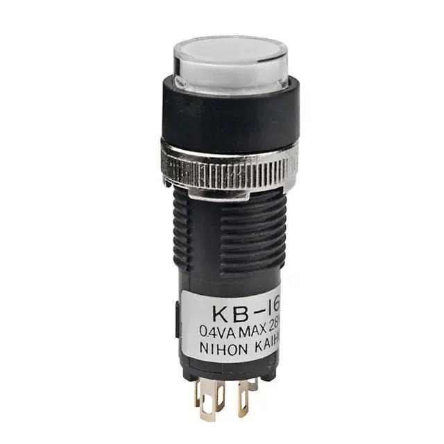 This is manufactured by NKK Switches. The manufacturer part number is KB16CKG01-5F-JB. It is assigned with possible HTSUS value of 8536.50.9033. The product is rohs3 compliant. The product offers long-lasting services of 100,000 cycles. Moreover, it has solder lug terminal style. 28 v of DC voltage rating. The product has -25°c ~ 50°c operating temperature range. It also has a circular - 12.30mm dia dimensional features. The product also provide mechanical stability with 100,000 cycles. It comes in standard, illuminated configuration. The product exhibits 28 v of AC voltage rating. In addition, it is reach unaffected. It is supplied with led, green illumination. It is shipped in tray. It is designed as a on-on switching function. Its typical moisture sensitivity level is 1 (unlimited). The actuator marking of the product corelates with no marking. It has an integral spdt circuit. Additionally, the product's output is 0.4va (ac/dc) The product is available in panel mount, front configuration. The product kb, is a highly preferred choice for users. It is made from clear (white filter/diffuser). The product carries round, button actuator. The nominal illumination voltage of the product is 2.1 vdc. The product is designated with the ear99 code number