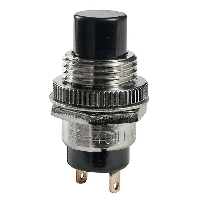 This is manufactured by NKK Switches. The manufacturer part number is SB4011NOMG. It is assigned with possible HTSUS value of 8536.50.9031. The product is rohs3 compliant. The product offers long-lasting services of 10,000 cycles. Moreover, it has solder lug terminal style. 28 v of DC voltage rating. The product has -10°c ~ 70°c operating temperature range. It also has a circular - 12.50mm dia dimensional features. The product also provide mechanical stability with 30,000 cycles. It comes in standard configuration. The product exhibits 28 v of AC voltage rating. In addition, it is reach unaffected. It is shipped in bulk. It is designed as a off-mom switching function. Its typical moisture sensitivity level is 1 (unlimited). The actuator marking of the product corelates with no marking. It has an integral spst-no circuit. It has a long 26 weeks standard lead time. Additionally, the product's output is 0.4va (ac/dc) The splendid features of the product include epoxy sealed terminals. The product is available in panel mount, rear configuration. The product sb40, is a highly preferred choice for users. It is made from black. The product carries plunger for cap actuator. Moreover, it corresponds to sb4011, a base product number of the product. The product is designated with the ear99 code number