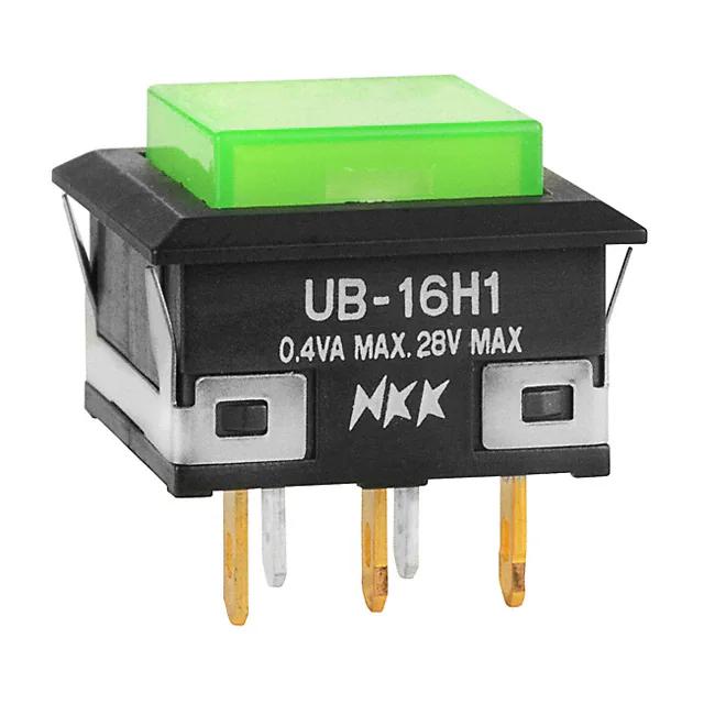 This is manufactured by NKK Switches. The manufacturer part number is UB16KKG015F-FJ. It is assigned with possible HTSUS value of 8536.50.9033. The product is rohs3 compliant. The product offers long-lasting services of 200,000 cycles. Moreover, it has solder lug terminal style. 28 v of DC voltage rating. The product has -25°c ~ 50°c operating temperature range. It also has a square - 16.20mm x 16.20mm dimensional features. The product also provide mechanical stability with 200,000 cycles. It comes in standard, illuminated configuration. The product exhibits 28 v of AC voltage rating. In addition, it is reach unaffected. It is supplied with led, green illumination. It is shipped in tray. It is designed as a on-on switching function. Its typical moisture sensitivity level is 1 (unlimited). The actuator marking of the product corelates with no marking. It has an integral spdt circuit. It has a long 24 weeks standard lead time. Additionally, the product's output is 0.4va (ac/dc) The splendid features of the product include process sealed. The product is available in panel mount, snap-in configuration. The product ub, is a highly preferred choice for users. It is made from green. The product carries square, button actuator. The nominal illumination voltage of the product is 2.1 vdc. Moreover, it corresponds to ub16kkg, a base product number of the product. The product is designated with the ear99 code number