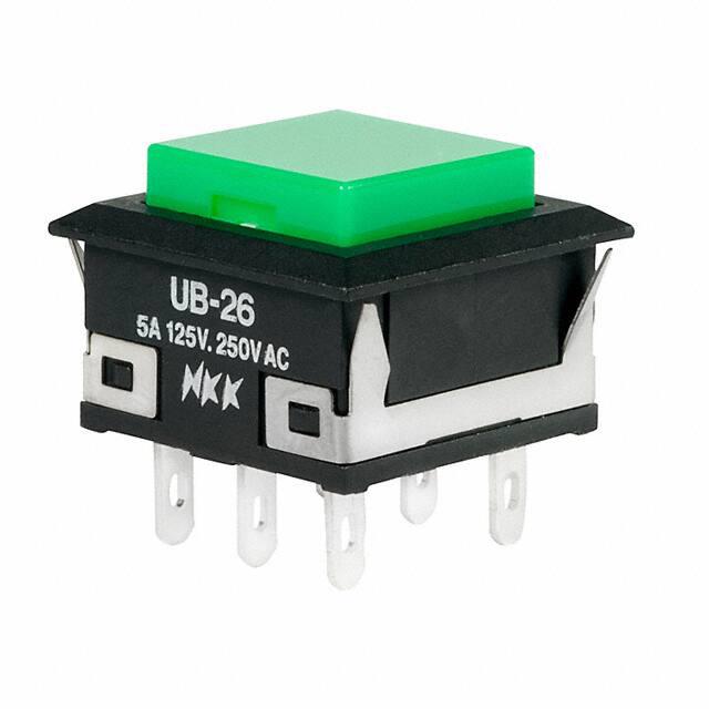 This is manufactured by NKK Switches. The manufacturer part number is UB26KKW01N-F. It is assigned with possible HTSUS value of 8536.50.9033. The product is rohs3 compliant. The product offers long-lasting services of 10,000 cycles. Moreover, it has solder lug terminal style. 30 v of DC voltage rating. The product has -20°c ~ 70°c operating temperature range. It also has a square - 16.20mm x 16.20mm dimensional features. The product also provide mechanical stability with 200,000 cycles. It comes in standard configuration. The product exhibits 125 v of AC voltage rating. In addition, it is reach unaffected. It is shipped in tray. It is designed as a on-on switching function. Its typical moisture sensitivity level is 1 (unlimited). The actuator marking of the product corelates with no marking. It has an integral dpdt circuit. It has a long 24 weeks standard lead time. Additionally, the product's output is 5a (ac/dc) The splendid features of the product include stainless steel. The product is available in panel mount, snap-in configuration. The product ub, is a highly preferred choice for users. It is made from green. The product carries square, button actuator. Moreover, it corresponds to ub26kkw, a base product number of the product. The product is designated with the ear99 code number