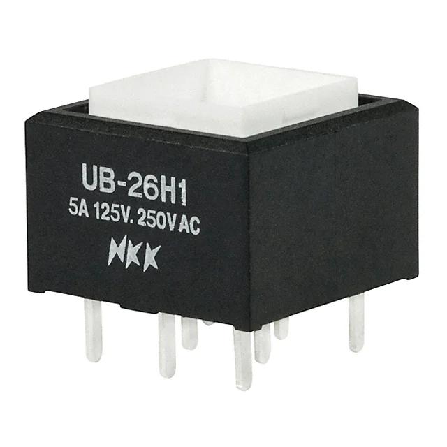This is manufactured by NKK Switches. The manufacturer part number is UB26SKW035F. It is assigned with possible HTSUS value of 8536.50.9033. The product is rohs3 compliant. The product offers long-lasting services of 10,000 cycles. Moreover, it has pc pin terminal style. 30 v of DC voltage rating. The product has -25°c ~ 50°c operating temperature range. The product also provide mechanical stability with 200,000 cycles. It comes in standard, illuminated configuration. The product exhibits 125 v of AC voltage rating. In addition, it is reach unaffected. It is supplied with led, green illumination. It is shipped in bulk. It is designed as a on-on switching function. Its typical moisture sensitivity level is 1 (unlimited). The actuator marking of the product corelates with no marking. It has an integral dpdt circuit. It has a long 24 weeks standard lead time. Additionally, the product's output is 5a (ac/dc) The splendid features of the product include stainless steel. The product is available in through hole configuration. The product ub, is a highly preferred choice for users. The product carries plunger for cap actuator. The nominal illumination voltage of the product is 2.1 vdc. Moreover, it corresponds to ub26skw, a base product number of the product. The product is designated with the ear99 code number
