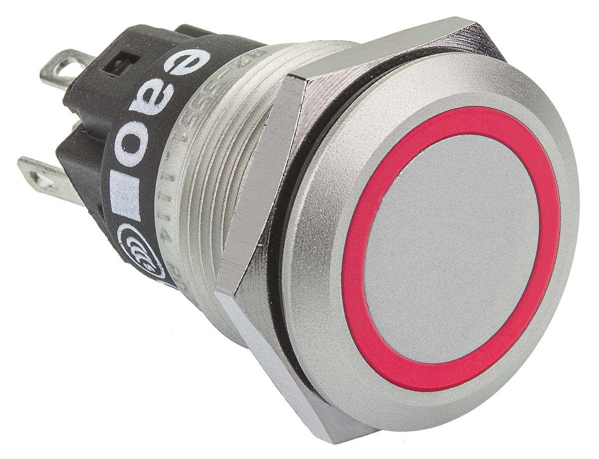 This is NO/NC Momentary Push Button Switch IP65 IP67 19 (Dia.)mm Panel Mount Red LED 24V manufactured by EAO. The manufacturer part number is 82-5551.1114. The product is available in panel mount configuration. The product 82, is a highly preferred choice for users. Moreover, the product has a nominal 240v voltage rating. It has a maximum operating temperature of +70°c. Whereas, the minimum operating temperature of the product is -30°c. The terminal is a plug in, solder type. The product is made from sturdy silver alloy materials. It is assigned with possible HTSUS value of 8536.50.9031. The product is rohs3 compliant. The product offers long-lasting services of 50,000 cycles. Moreover, it has solder, quick connect - 0.110" (2.8mm) terminal style. 240 v of DC voltage rating. The product has -30°c ~ 70°c operating temperature range. It also has a circular - 19.00mm dia dimensional features. The product also provide mechanical stability with 1,000,000 cycles. It comes in standard, illuminated configuration. The product exhibits 240 v of AC voltage rating. In addition, it is reach affected. It is supplied with led, red illumination. It is shipped in bulk. It is designed as a on-mom switching function. Its typical moisture sensitivity level is not applicable. The actuator marking of the product corelates with no marking. It has an integral spdt circuit. It has a long 14 weeks standard lead time. Additionally, the product's output is 3a (ac/dc) It is IP rated with ip65/ip67 - dust tight, water resistant, waterproof. The product is available in panel mount, front configuration. It is made from silver. The product carries round, button, flush actuator. The nominal illumination voltage of the product is 24 vac/dc. Moreover, it corresponds to 82-5551, a base product number of the product. The product is designated with the ear99 code number