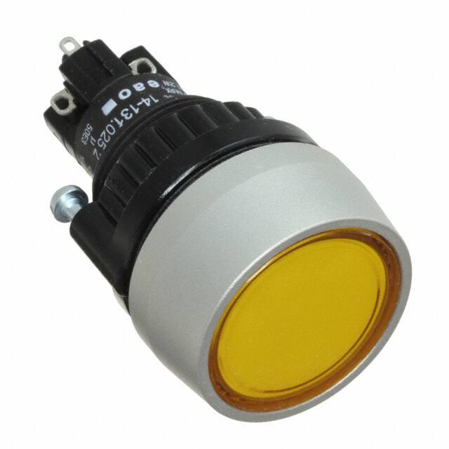 This is manufactured by EAO. The manufacturer part number is K14-131.121071. It is assigned with possible HTSUS value of 8536.50.9031. The product is rohs3 compliant. Moreover, it has solder lug terminal style. 250 v of DC voltage rating. The product has -25°c ~ 55°c operating temperature range. It also has a circular - 22.30mm dia dimensional features. The product also provide mechanical stability with 2,000,000 cycles. It comes in standard, illuminated configuration. The product exhibits 250 v of AC voltage rating. In addition, it is reach unaffected. It is supplied with led, yellow illumination. It is shipped in bulk. It is designed as a on-mom, off-mom switching function. Its typical moisture sensitivity level is not applicable. The actuator marking of the product corelates with no marking. It has an integral dpst-no/nc circuit. It has a long 14 weeks standard lead time. Additionally, the product's output is 5a (ac/dc) It is IP rated with ip67 - dust tight, waterproof. The product is available in panel mount, front configuration. The product 14, is a highly preferred choice for users. It is made from yellow. The product carries round, button, flush actuator. The nominal illumination voltage of the product is 24 vac/dc. Moreover, it corresponds to k14-131, a base product number of the product. The product is designated with the ear99 code number