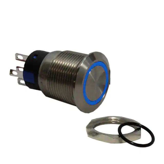 This is manufactured by CIT Relay and Switch. The manufacturer part number is AHU1LBSBN. It is assigned with possible HTSUS value of 8536.50.9031. The product is rohs compliant. The product offers long-lasting services of 50,000 cycles. Moreover, it has solder, quick connect - 0.110" (2.8mm) terminal style. The product has -20°c ~ 65°c operating temperature range. It also has a circular - 19.00mm dia dimensional features. The product also provide mechanical stability with 500,000 cycles. It comes in anti-vandal, illuminated configuration. The product exhibits 125 v of AC voltage rating. In addition, it is reach unaffected. It is supplied with led, blue illumination. It is shipped in tray. It is designed as a on-on switching function. Its typical moisture sensitivity level is 1 (unlimited). The actuator marking of the product corelates with no marking. It has an integral spdt circuit. It has a long 9 weeks standard lead time. Additionally, the product's output is 3a (ac) It is IP rated with ip67 - dust tight, waterproof. The product is available in panel mount, front configuration. The product ahu, is a highly preferred choice for users. It is made from silver. The product carries round, button, flush actuator. Moreover, it corresponds to ahu1, a base product number of the product. The product is designated with the ear99 code number