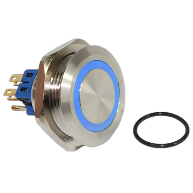 This is manufactured by CIT Relay and Switch. The manufacturer part number is DH302NBSB24. It is assigned with possible HTSUS value of 8536.50.9031. The product is rohs compliant. The product offers long-lasting services of 50,000 cycles. Moreover, it has solder, quick connect - 0.110" (2.8mm) terminal style. 24 v of DC voltage rating. The product has -25°c ~ 70°c operating temperature range. It also has a circular - 30.00mm dia dimensional features. It comes in anti-vandal, illuminated configuration. The product exhibits 125 v of AC voltage rating. In addition, it is reach unaffected. It is supplied with led, blue illumination. It is shipped in tray. It is designed as a on-mom, off-mom switching function. Its typical moisture sensitivity level is 1 (unlimited). The actuator marking of the product corelates with no marking. It has an integral 4pst-2no/2nc circuit. It has a long 9 weeks standard lead time. Additionally, the product's output is 2a (ac/dc) It is IP rated with ip67 - dust tight, waterproof. The product is available in panel mount, front configuration. The product dh, is a highly preferred choice for users. It is made from silver. The product carries round, button, flush actuator. The nominal illumination voltage of the product is 24 vdc. Moreover, it corresponds to dh302, a base product number of the product. The product is designated with the ear99 code number