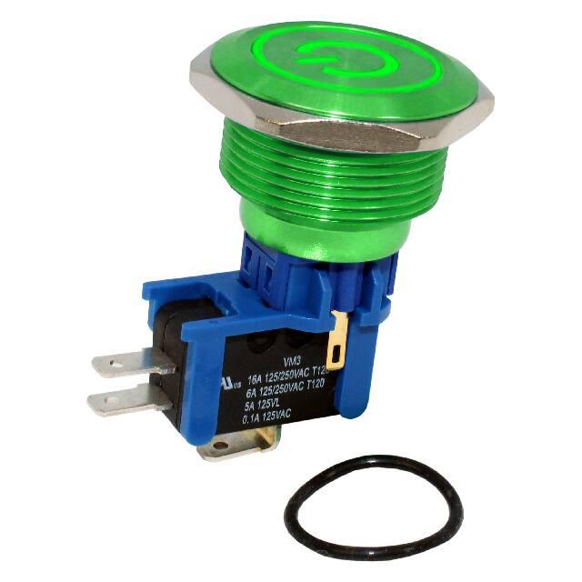 This is manufactured by CIT Relay and Switch. The manufacturer part number is DHU301NGGGNB. It is assigned with possible HTSUS value of 8536.50.9031. The product is rohs compliant. The product offers long-lasting services of 100,000 cycles. Moreover, it has quick connect - 0.110"/0.250" terminal style. The product has -40°c ~ 85°c operating temperature range. It also has a circular - 30.00mm dia dimensional features. It comes in anti-vandal, illuminated configuration. The product exhibits 125 v of AC voltage rating. In addition, it is reach unaffected. It is supplied with led, green illumination. It is shipped in tray. It is designed as a on-mom switching function. Its typical moisture sensitivity level is 1 (unlimited). The actuator marking of the product corelates with no marking. It has an integral spdt circuit. It has a long 9 weeks standard lead time. Additionally, the product's output is 16a (ac) It is IP rated with ip67 - dust tight, waterproof. The product is available in panel mount, front configuration. The product dhu, is a highly preferred choice for users. It is made from green. The product carries round, button, flush actuator. Moreover, it corresponds to dhu301, a base product number of the product. The product is designated with the ear99 code number