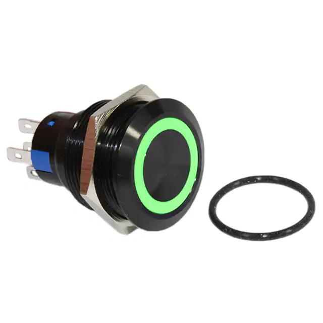 This is manufactured by CIT Relay and Switch. The manufacturer part number is DH22U1NBBGN. It is assigned with possible HTSUS value of 8536.50.9031. The product is rohs compliant. The product offers long-lasting services of 50,000 cycles. Moreover, it has solder lug terminal style. The product has -20°c ~ 55°c operating temperature range. It also has a circular - 22.00mm dia dimensional features. The product also provide mechanical stability with 1,000,000 cycles. It comes in anti-vandal, illuminated configuration. The product exhibits 125 v of AC voltage rating. In addition, it is reach unaffected. It is supplied with led, green illumination. It is shipped in tray. It is designed as a on-mom switching function. Its typical moisture sensitivity level is 1 (unlimited). The actuator marking of the product corelates with no marking. It has an integral spdt circuit. It has a long 9 weeks standard lead time. Additionally, the product's output is 3a (ac) It is IP rated with ip67 - dust tight, waterproof. The product is available in panel mount, front configuration. The product dh22u, is a highly preferred choice for users. It is made from silver. The product carries round, button, flush actuator. Moreover, it corresponds to dh22u, a base product number of the product. The product is designated with the ear99 code number