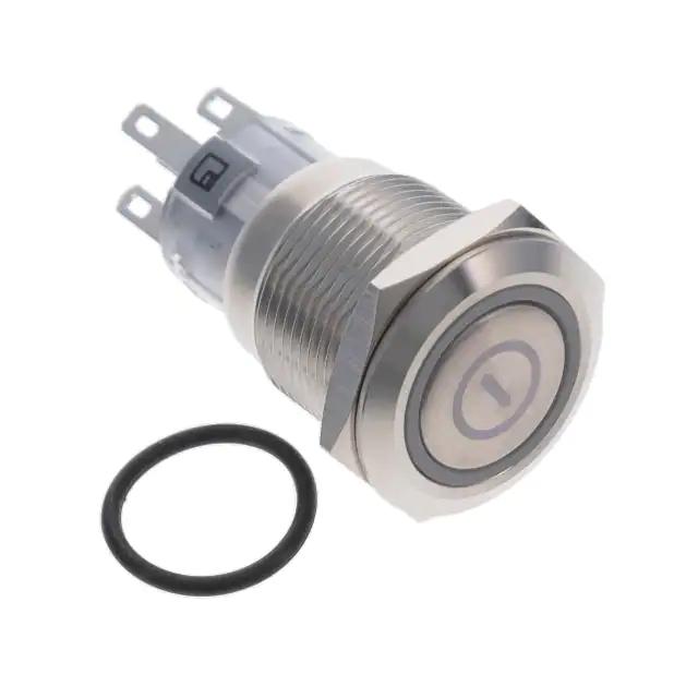 This is manufactured by E-Switch. The manufacturer part number is PV4F2B0SS-331-M29. It is assigned with possible HTSUS value of 8536.50.9031. The product is rohs3 compliant. The product offers long-lasting services of 50,000 cycles. Moreover, it has solder, quick connect - 0.110" (2.8mm) terminal style. 24 v of DC voltage rating. The product has -20°c ~ 55°c operating temperature range. It also has a circular - 19.00mm dia dimensional features. The product also provide mechanical stability with 1,000,000 cycles. It comes in anti-vandal, illuminated configuration. It is supplied with led, green illumination. It is shipped in bulk. It is designed as a on-mom switching function. Its typical moisture sensitivity level is 1 (unlimited). It has an integral spdt circuit. It has a long 13 weeks standard lead time. Additionally, the product's output is 2a (dc) It is IP rated with ip65 - dust tight, water resistant. The product is available in panel mount, front configuration. The product pv4, lamb, is a highly preferred choice for users. It is made from silver. The product carries round, button, flush actuator. The nominal illumination voltage of the product is 2.8 vdc. The product is designated with the ear99 code number