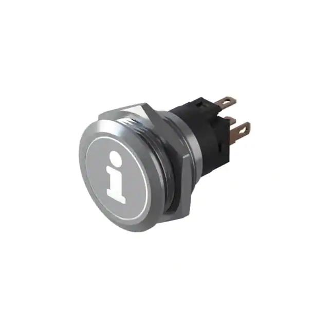 This is 82 Series Illuminated Momentary Push Button Switch Flush Mount Single Pole Double Throw White LED 240V IP65 manufactured by EAO. The manufacturer part number is 82-6151.1A54.B004. Legend Information: information symbol. Moreover, the product has a nominal 240v voltage rating. It has a maximum operating temperature of +70°c. The terminal is a plug in, solder type. The product is available in panel mount configuration. The product 82, is a highly preferred choice for users. Whereas, the minimum operating temperature of the product is -30°c. The product is made from sturdy silver alloy materials. It is assigned with possible HTSUS value of 8536.50.9031. The product is rohs3 compliant. The product offers long-lasting services of 50,000 cycles. Moreover, it has solder, quick connect - 0.110" (2.8mm) terminal style. 24 v of DC voltage rating. The product has -30°c ~ 70°c operating temperature range. It also has a circular - 22.00mm dia dimensional features. The product also provide mechanical stability with 1,000,000 cycles. It comes in standard, illuminated configuration. The product exhibits 120 v of AC voltage rating. In addition, it is reach unaffected. It is supplied with led, white illumination. It is shipped in tray. It is designed as a on-mom switching function. Its typical moisture sensitivity level is not applicable. It has an integral spdt circuit. It has a long 14 weeks standard lead time. Additionally, the product's output is 5a (ac), 1a (dc) It is IP rated with ip65/ip67 - dust tight, water resistant, waterproof. The product is available in panel mount, front configuration. It is made from silver. The product carries round, button, flush actuator. The nominal illumination voltage of the product is 24 vac/dc. The product is designated with the ear99 code number