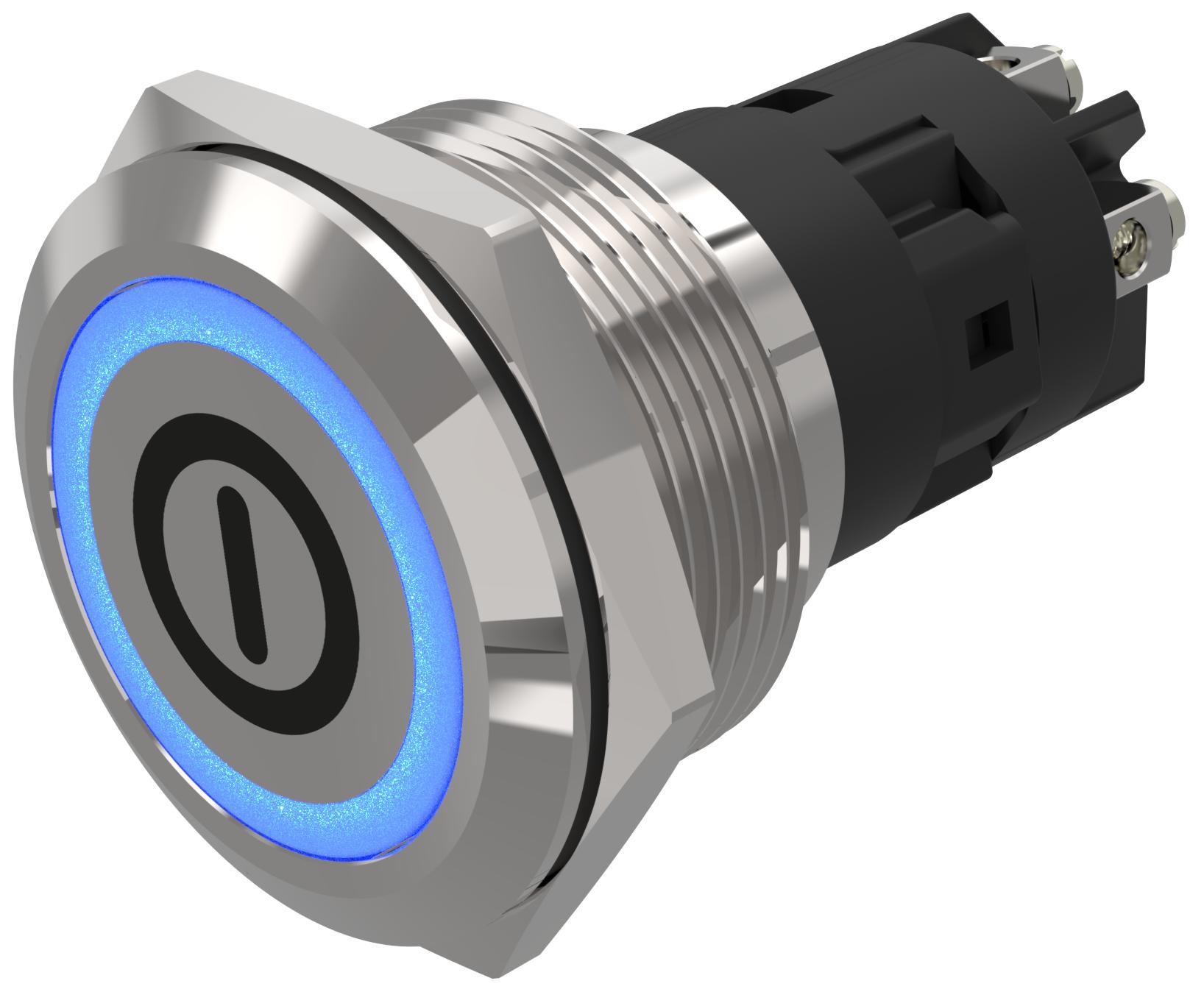 This is manufactured by EAO. The manufacturer part number is 82-6152.1124.B001. Legend Information: on / off. Moreover, the product has a nominal 240v voltage rating. It has a maximum operating temperature of +70°c. The terminal is a screw type. The product is available in panel mount configuration. The product 82, is a highly preferred choice for users. Whereas, the minimum operating temperature of the product is -30°c. The product is made from sturdy silver alloy materials. It is assigned with possible HTSUS value of 8536.50.9031. The product is rohs3 compliant. The product offers long-lasting services of 50,000 cycles. Moreover, it has screw terminal terminal style. 24 v of DC voltage rating. The product has -30°c ~ 70°c operating temperature range. It also has a circular - 22.00mm dia dimensional features. The product also provide mechanical stability with 1,000,000 cycles. It comes in standard, illuminated configuration. The product exhibits 120 v of AC voltage rating. In addition, it is reach unaffected. It is supplied with led, blue illumination. It is shipped in tray. It is designed as a on-mom switching function. Its typical moisture sensitivity level is not applicable. It has an integral spdt circuit. It has a long 14 weeks standard lead time. Additionally, the product's output is 5a (ac), 1a (dc) It is IP rated with ip65/ip67 - dust tight, water resistant, waterproof. The product is available in panel mount, front configuration. It is made from silver. The product carries round, button, flush actuator. The nominal illumination voltage of the product is 24 vac/dc. The product is designated with the ear99 code number
