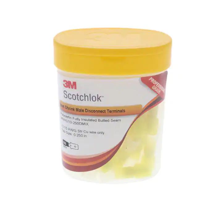 This is manufactured by 3M. The manufacturer part number is MNHU10-250DMIX-BOTTLE. It is assigned with possible HTSUS value of 8536.90.4000. The product is rohs compliant. The bespoke tab is 0.032" (0.81mm) thick. In addition, it is reach unaffected. The terminal is a standard type. It is shipped in bulk. Moreover, the product has a wire gauge of 10-12 awg. In addition, male is the available "Gender" of the product. The product has an integral 1.200" (30.48mm) overall length. Furthermore, the product is galvanized with excellent tin contact finishing. Its typical moisture sensitivity level is 1 (unlimited). The product features crimp termination style. It has a long 3 weeks standard lead time. The tab is 0.250" (6.35mm) wide. The splendid features of the product include butted seam. The product is available in free hanging (in-line) configuration. It has a classic yellow colour. The product scotchlok™, is a highly preferred choice for users. Insulation Option: fully insulated heat shrink. The product is made from sturdy copper materials. Moreover, it corresponds to mnhu10, a base product number of the product. The product is designated with the ear99 code number