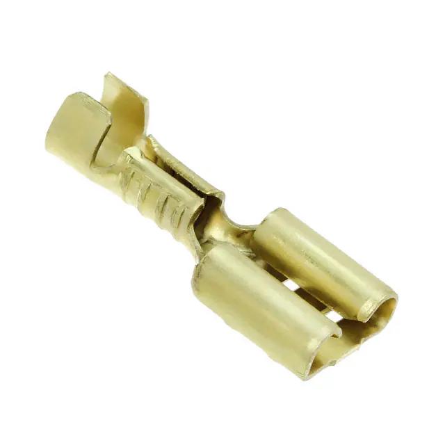 This is manufactured by TE Connectivity AMP Connectors. The manufacturer part number is 41445-1. It is assigned with possible HTSUS value of 8536.90.4000. The product is rohs3 compliant. The bespoke tab is 0.032" (0.81mm) thick. In addition, it is vendor undefined. The product's insulation diameter includes 0.120" ~ 0.145" (3.05mm ~ 3.68mm). The terminal is a standard type. It is shipped in bulk. Moreover, the product has a wire gauge of 16-18 awg. In addition, female is the available "Gender" of the product. The product has an integral 0.805" (20.45mm) overall length. Its typical moisture sensitivity level is 1 (unlimited). The product features crimp termination style. It has a long 28 weeks standard lead time. The tab is 0.250" (6.35mm) wide. The product is available in free hanging (in-line) configuration. The product faston, is a highly preferred choice for users. Insulation Option: non-insulated. The product is made from sturdy brass materials. Moreover, it corresponds to 41445, a base product number of the product. The product is designated with the ear99 code number