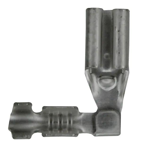 This is manufactured by TE Connectivity AMP Connectors. The manufacturer part number is 61070-1. It is assigned with possible HTSUS value of 8536.90.4000. The product is rohs compliant. The bespoke tab is 0.020" (0.51mm) thick. In addition, it is vendor undefined. The product's insulation diameter includes 0.060" ~ 0.100" (1.52mm ~ 2.54mm). The terminal is a angled - 90°, flag type. It is shipped in tape & reel (tr). Moreover, the product has a wire gauge of 18-22 awg. In addition, female is the available "Gender" of the product. Furthermore, the product is galvanized with excellent tin contact finishing. Its typical moisture sensitivity level is 1 (unlimited). The product features crimp termination style. It has a long 14 weeks standard lead time. The tab is 0.110" (2.79mm) wide. The product is available in free hanging (in-line), right angle configuration. The product faston, is a highly preferred choice for users. Insulation Option: non-insulated. The product is made from sturdy brass materials. Moreover, it corresponds to 61070, a base product number of the product. The product is designated with the ear99 code number