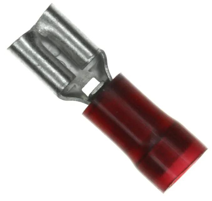 This is manufactured by Panduit Corp. The manufacturer part number is DNF18-187-C. It is assigned with possible HTSUS value of 8536.90.4000. The product is rohs3 compliant. The bespoke tab is 0.032" (0.81mm) thick. In addition, it is reach unaffected. The product's insulation diameter includes 0.137" (3.48mm). The terminal is a standard type. It is shipped in bulk. Moreover, the product has a wire gauge of 18-22 awg. In addition, female is the available "Gender" of the product. The product has an integral 0.760" (19.30mm) overall length. Furthermore, the product is galvanized with excellent tin contact finishing. Its typical moisture sensitivity level is not applicable. The product features crimp termination style. It has a long 4 weeks standard lead time. The tab is 0.187" (4.75mm) wide. The splendid features of the product include serrated termination. The product is available in free hanging (in-line) configuration. It has a classic red colour. The product pan-term®, is a highly preferred choice for users. Insulation Option: non-mating end insulated. The product is made from sturdy brass materials. Moreover, it corresponds to dnf18, a base product number of the product. The product is designated with the ear99 code number