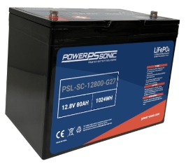 This is Rechargeable Lithium Iron Phosphate Battery PSL-SC LiFeO4 Series Connection Range manufactured by Powersonic. The manufacturer part number is PSL-SC-12800-G27.