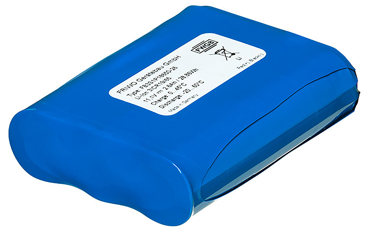 This is 11.1V Rechargeable Lithium Battery Pack 2600mAh manufactured by Friwo. The manufacturer part number is 5500089. The module has the capacity of 2.6ah. It is comprised of 3 cells. The terminal is a plug in type.