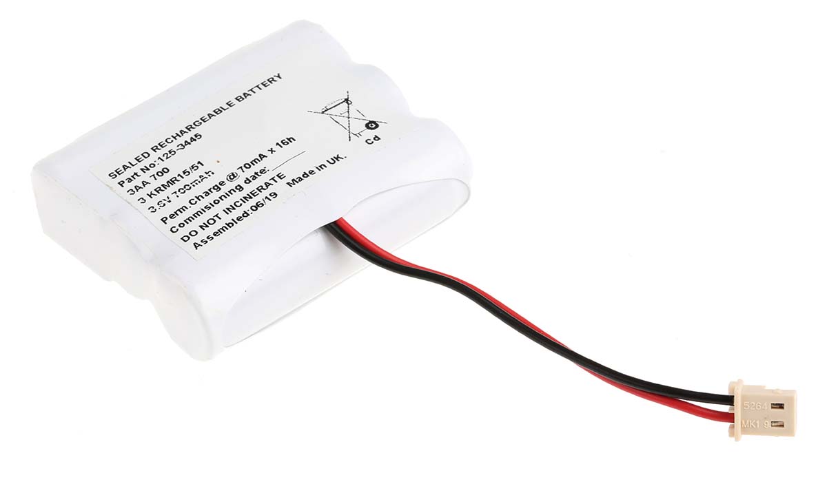 This is 3.6V NiCd AA Rechargeable Battery Pack 700mAh manufactured by RS Pro. The manufacturer part number is 125-3445. The module has the capacity of 700mah. It is comprised of 3 cells. The product is available in aa size.