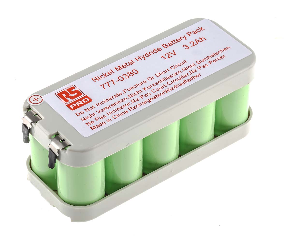 This is 12V NiMH Rechargeable Battery Pack 3200mAh manufactured by RS Pro. The manufacturer part number is 777-0380. The module has the capacity of 3.2ah. It is comprised of 10 cells. The terminal is a tags type. The product is available in cs size.