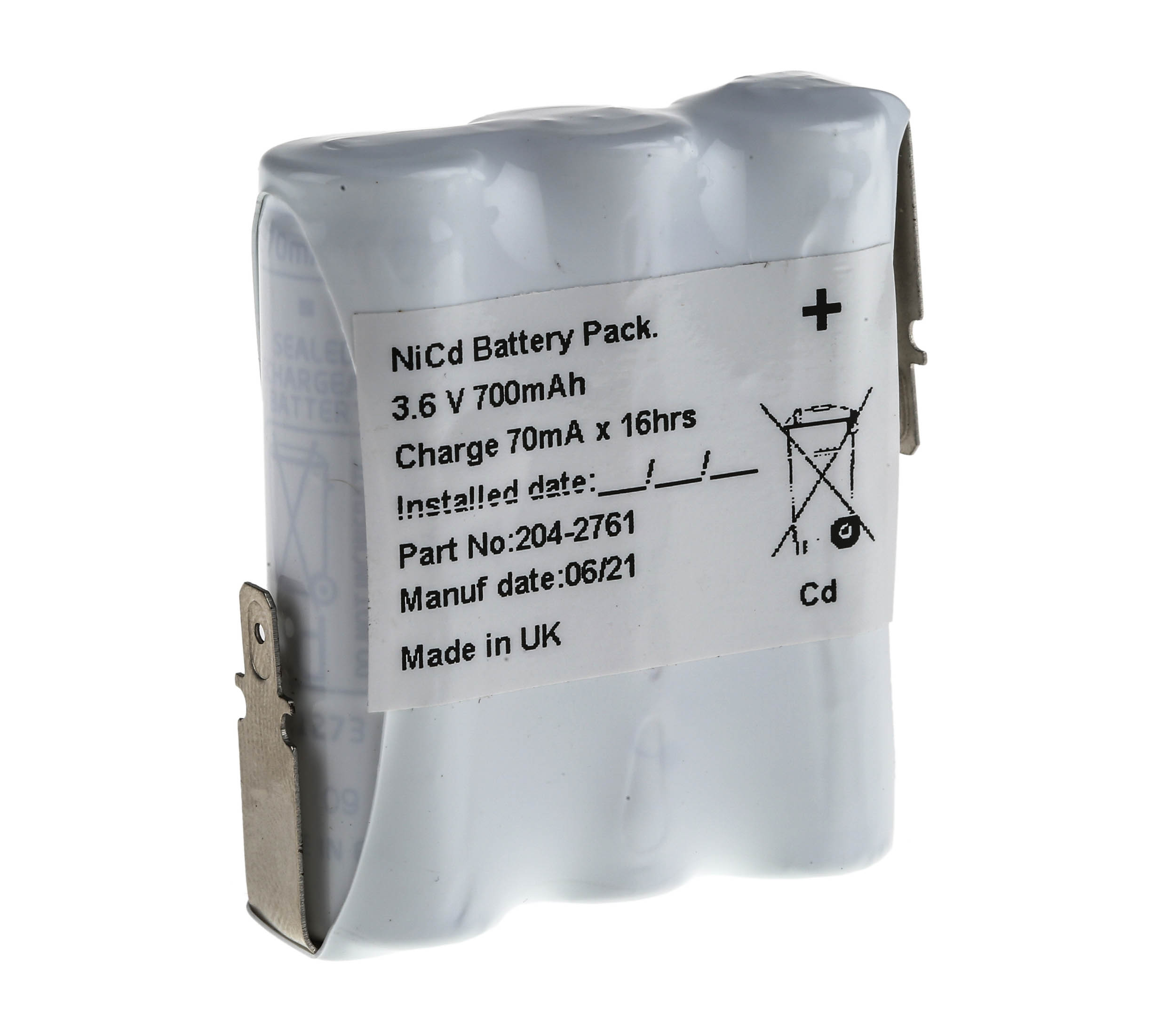 This is 3.6V NiCd AA Rechargeable Battery Pack 700mAh manufactured by RS PRO. The manufacturer part number is 204-2761. The module has the capacity of 700mah. It is comprised of 3 cells. The terminal is a wire lead type.