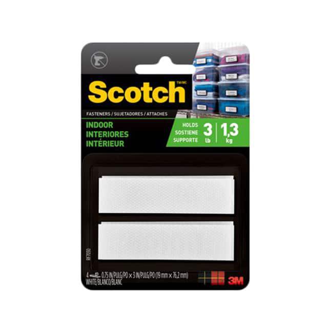 This is manufactured by 3M. The manufacturer part number is RF7030. It is assigned with possible HTSUS value of 5806.10.2400. Furthermore, the product is 0.750" (19.05mm) wide. It comes in hook and loop configuration. It is shipped in box. Its typical moisture sensitivity level is not applicable. Its accurate length is 3.000" (76.20mm). It has a long 7 weeks standard lead time. The product is available in adhesive configuration. It has a classic white colour. The product scotch™, is a highly preferred choice for users. Moreover, it corresponds to rf703, a base product number of the product. The product is designated with the ear99 code number