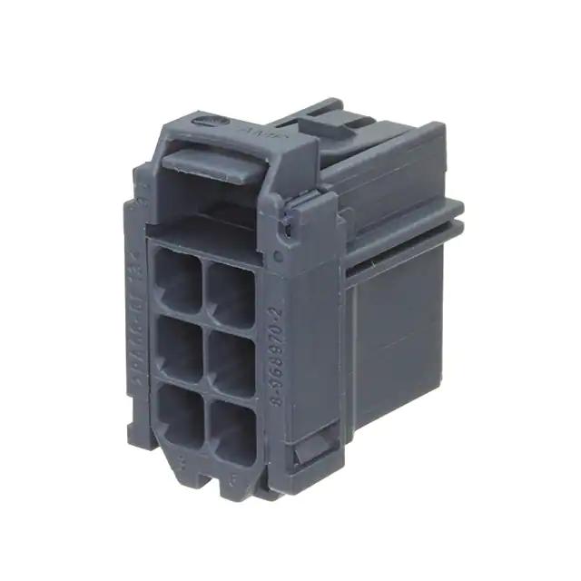 This is manufactured by TE Connectivity AMP Connectors. The manufacturer part number is 8-968970-2. It is assigned with possible HTSUS value of 8538.90.6000. The product is rohs compliant. Note: contacts not included. The product has -40°c ~ 120°c operating temperature range. The product carries possible position value of 6. In addition, it is vendor undefined. It comes in 2 of rows. It is shipped in bulk. receptacle Connector type offer robust functionality. Its typical moisture sensitivity level is 1 (unlimited). It has typical contact type of female socket. Furthermore, locking ramp is the Fastening Type of the product. It has a long 10 weeks standard lead time. The product is available in free hanging (in-line) configuration. It has a classic gray colour. The product mcp, is a highly preferred choice for users. Moreover, the product is 0.197" (5.00mm) The space between it rows includes 0.197" (5.00mm). It also incorporates crimp contact terminals. Moreover, it corresponds to 968970, a base product number of the product. The product is designated with the ear99 code number