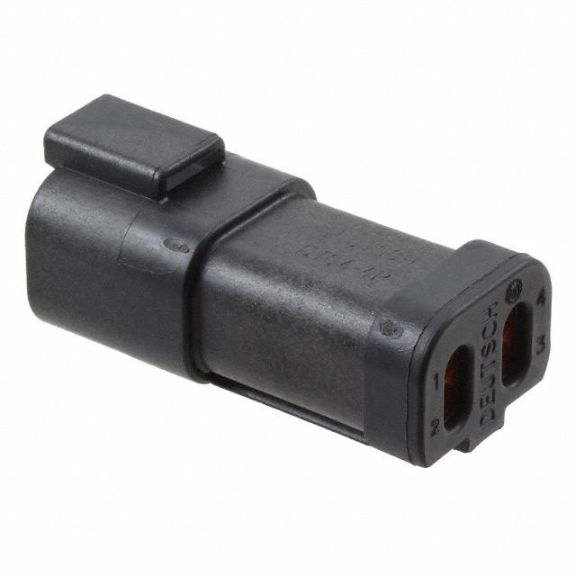 This is manufactured by TE Connectivity Deutsch Connectors. The manufacturer part number is DT04-4P-CE03. It is assigned with possible HTSUS value of 8536.69.8000. The product is rohs3 compliant. Note: contacts not included. The product has -55°c ~ 125°c operating temperature range. The product carries possible position value of 4. In addition, it is reach unaffected. It comes in 2 of rows. It is shipped in bulk. receptacle Connector type offer robust functionality. Its typical moisture sensitivity level is not applicable. It has typical contact type of male pin. Furthermore, latch holder is the Fastening Type of the product. The splendid features of the product include cap (cover), ip68, ip6k9k, reduced wire seals. The product is available in free hanging (in-line) configuration. It has a classic black colour. The product dt, is a highly preferred choice for users. It also incorporates crimp contact terminals. Moreover, it corresponds to dt04, a base product number of the product. The product is designated with the ear99 code number