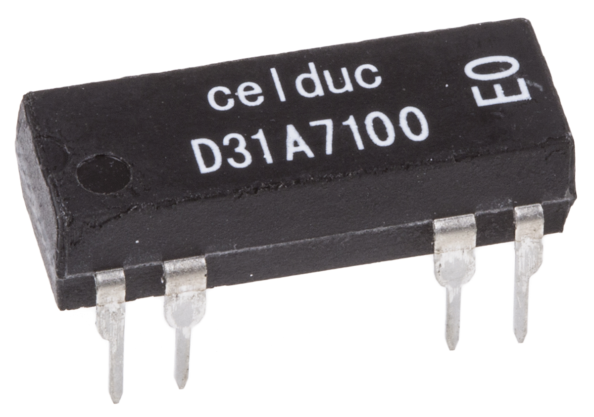 This is SPNO Reed Relay 0.5 A 24V dc manufactured by Celduc. The manufacturer part number is D31A7100. It features a 150 mω contact resistance. The given dimensions of the product include 19.1 x 7.85 x 6.8mm. The product is available in plug in configuration. Whereas, the minimum operating temperature of the product is -40°c. The coil voltage of the product is 24v dc. The product comes in 7.85mm depth. In addition, the height is 6.8mm. Its accurate length is 19.1mm. The product is made from sturdy rhodium materials. It has a maximum operating temperature of +70°c. The terminal is a through hole type. It holds up to 2150ω coil resistance.