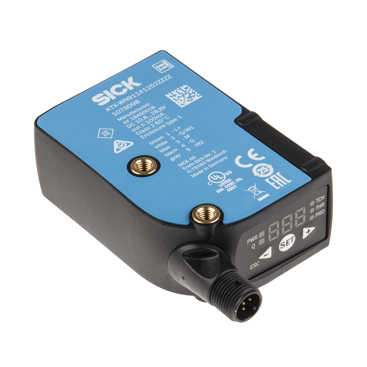 This is KTX Contrast Sensor manufactured by Sick. The manufacturer part number is KTX-WN91141252ZZZZZZZZZZZZZZZ1. The product is available in panel mount configuration. The product ktx, is a highly preferred choice for users. Furthermore, it has anpn output. The product also features robust vistal housing material. Whereas, the minimum operating temperature of the product is -20°c. It has a maximum operating temperature of +60°c. The terminal is a m12 male 5-pin connector type. Uses rgb led as a light source.