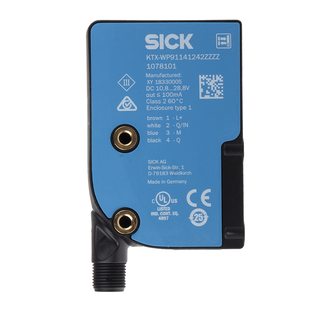 This is 13 mm RGB LED Contrast Sensors PNP 100 mA 10.8 → 28.8 V dc IP67 manufactured by Sick. The manufacturer part number is KTX-WP91141242ZZZZZZZZZZZZZZZ1. The product is available in panel mount configuration. The product ktx, is a highly preferred choice for users. Furthermore, it has apnp output. The product also features robust vistal housing material. Whereas, the minimum operating temperature of the product is -20°c. It has a maximum operating temperature of +60°c. The terminal is a m12 male 4-pin connector type. Uses rgb led as a light source.