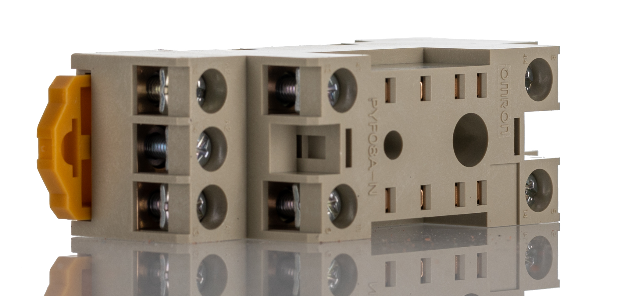 This is 2 pin Relay Socket for use with Various Series manufactured by Omron. The manufacturer part number is PYF08A-N. The product has a current rating of 5a. The product is available in din rail configuration. It carries a 250v ac of voltage. The product contains 8 contacts.
