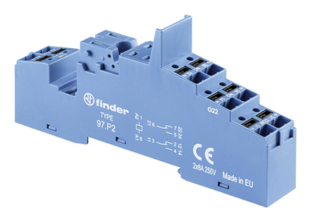 This is Relay Socket DIN Rail for use with 46.52 Relay manufactured by Finder. The manufacturer part number is 97.P2SPA. The product has a current rating of 10a. The product is available in din rail configuration. The product 97, is a highly preferred choice for users. It carries a 250v ac of voltage. The product contains 8 contacts.