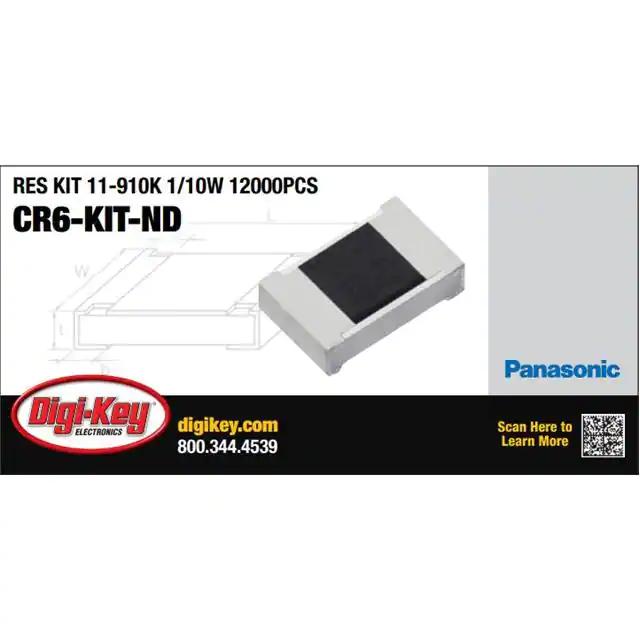 This is manufactured by Panasonic Electronic Components. The manufacturer part number is CR6-KIT. Moreover, the given resistance of the product is 11 ~ 910k. The thick film is designed to provide robust applications in a variety of specific settings. The splendid features of the product include automotive aec-q200. It is assigned with possible HTSUS value of 8533.21.0030. It is shipped in box. The product erj, is a highly preferred choice for users. The product is rohs compliant. The product features power and watts of 1/10w. Its typical moisture sensitivity level is 1 (unlimited). The product is available in surface mount configuration. Available in 12000 pieces (60 values - 200 each) quantity. It features ±5% of tolerance value. The product is designated with the ear99 code number