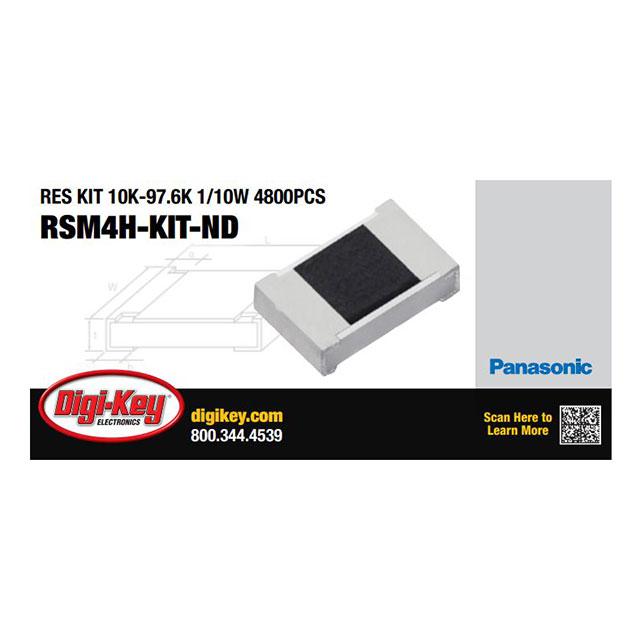 This is manufactured by Panasonic Electronic Components. The manufacturer part number is RSM4H. Moreover, the given resistance of the product is 10k ~ 97.6k. The thick film is designed to provide robust applications in a variety of specific settings. The splendid features of the product include automotive aec-q200. It is assigned with possible HTSUS value of 8533.21.0030. It is shipped in bag. The product erj, is a highly preferred choice for users. The product is rohs compliant. The product features power and watts of 1/10w. Its typical moisture sensitivity level is 1 (unlimited). The product is available in surface mount configuration. Available in 4800 pieces (96 values - 50 each) quantity. It features ±1% of tolerance value. The product is designated with the ear99 code number
