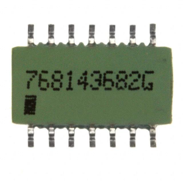 This is manufactured by CTS Resistor Products. The manufacturer part number is 768143682G. It is assigned with possible HTSUS value of 8533.21.0010. The product is rohs3 compliant. It exhibits an excellent temperature coefficient of ±100ppm/°c. The product has -55°c ~ 125°c operating temperature range. Moreover, the product comes in [Package/ Case]. It features ±2% of tolerance value. Moreover, the given resistance of the product is 6.8k. It has the maximum seated height of 0.071" (1.80mm) In addition, it is reach unaffected. It is comprised of 14 pins. It is a type of isolated circuit. It is shipped in tube. The product's diameters include 0.390" l x 0.220" w (9.91mm x 5.59mm). The product features a 200mw of power per element. Its typical moisture sensitivity level is 1 (unlimited). The product is available in surface mount configuration. The product 768, is a highly preferred choice for users. It comprises 7 resistors. The product is designated with the ear99 code number