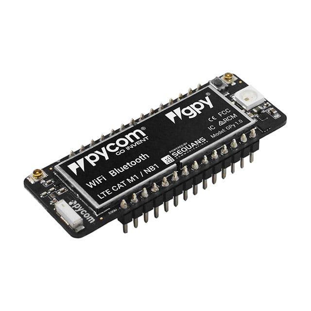 This is manufactured by Pycom Ltd.. The manufacturer part number is GPY. It is assigned with possible HTSUS value of 8517.62.0090. It is shipped in bag. The product is rohs compliant. Its typical moisture sensitivity level is 1 (unlimited). Supplied with 2.4ghz of frequency. The product is also supplied with contents, such as board(s). It comes in transceiver; 802.11 b/g/n (wi-fi, wifi, wlan), bluetooth® smart ready 4.x dual mode configuration. The product is suitable for use with esp32, g01. The product is designated with the 5a002a pyc code number