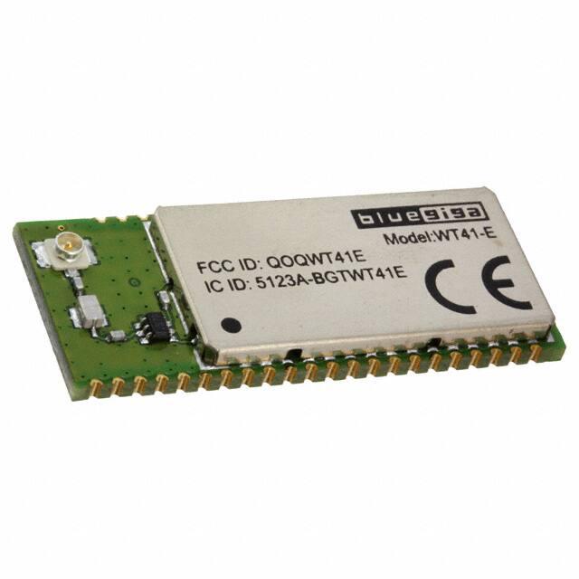 This is manufactured by Silicon Labs. The manufacturer part number is WT41-E-AI4. It is assigned with possible HTSUS value of 8517.62.0090. The product has -40°c ~ 85°c operating temperature range. Moreover, the product comes in [Package/ Case]. It carries 51.6ma ~ 120ma transmission current. The current receiving of the product is 52.6ma. It has a maximised data speed rate of 3mbps. It is shipped in strip. Its typical moisture sensitivity level is 3 (168 hours). The standard RF Family of the product includes bluetooth. The product features a bluetooth v2.1 +edr, class 1 protocol. The product is available in surface mount configuration. It is a antenna not included, u.fl antenna. The sensitivity given includes -92dbm. It features pio, spi, uart, usb serial interface. Supplied with 2.4ghz of frequency. It has optimum voltage supply of 3v ~ 3.6v. The product has an output power 19dbm. The product is designated with the 5a992c code number