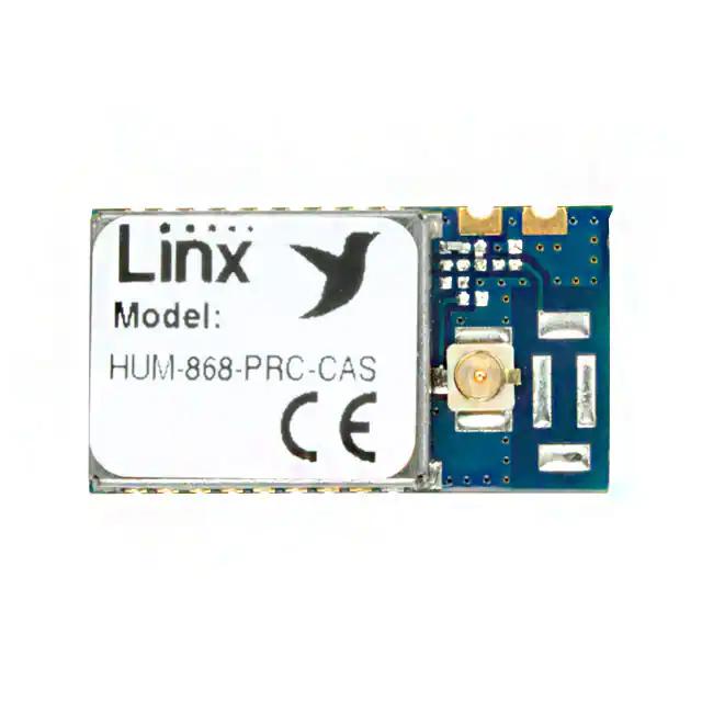This is manufactured by Linx Technologies Inc.. The manufacturer part number is HUM-868-PRC-CAS. It is assigned with possible HTSUS value of 8517.62.0090. The product is rohs compliant. The product has -40°c ~ 85°c operating temperature range. Moreover, the product comes in [Package/ Case]. It carries 22ma ~ 40.5ma transmission current. The current receiving of the product is 23.5ma. Features fhss, fsk modulation. In addition, it is reach unaffected. It has a maximised data speed rate of 115.2kbps. It is shipped in tray. Its typical moisture sensitivity level is 1 (unlimited). The standard RF Family of the product includes general ism < 1ghz. It has a long 43 weeks standard lead time. The product is available in surface mount configuration. It is a antenna not included, castellation antenna. The product humprc™, is a highly preferred choice for users. The sensitivity given includes -100dbm. It features uart serial interface. Supplied with 863mhz ~ 870mhz of frequency. It has optimum voltage supply of 2v ~ 3.6v. The product has an output power 9.5dbm. Moreover, it corresponds to hum-868, a base product number of the product. The product is designated with the 5a992c code number