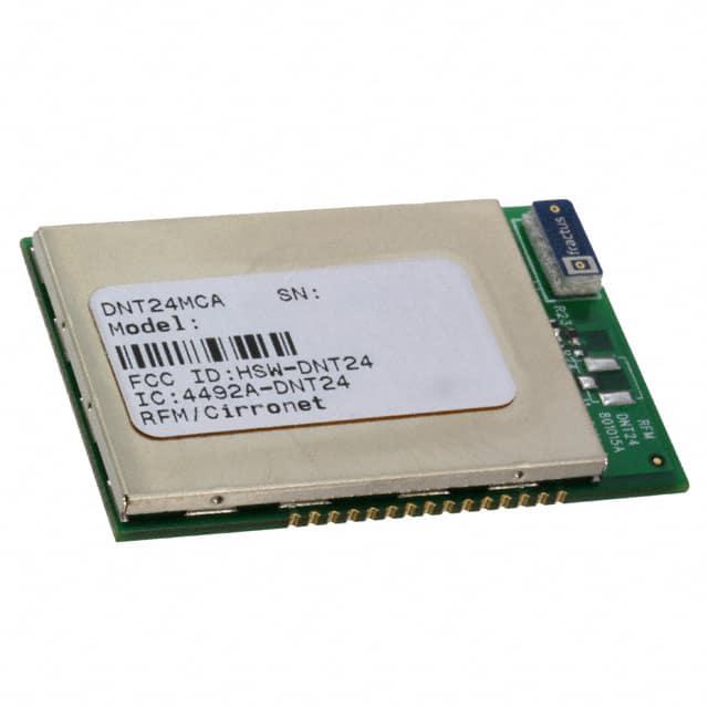 This is manufactured by Murata Electronics. The manufacturer part number is DNT24MCA. It is assigned with possible HTSUS value of 8525.60.1050. The product is rohs3 compliant. The product has -40°c ~ 85°c operating temperature range. Moreover, the product comes in [Package/ Case]. It carries 140ma (max) transmission current. The current receiving of the product is 15ma ~ 55ma. Features fhss, fsk modulation. It has a maximised data speed rate of 500kbps. It is shipped in tray. Its typical moisture sensitivity level is 1 (unlimited). The standard RF Family of the product includes general ism > 1ghz. It has a long 99 weeks standard lead time. The product is available in surface mount configuration. It is a antenna not included, u.fl antenna. The sensitivity given includes -100dbm. It features spi, uart serial interface. Supplied with 2.4ghz of frequency. It has optimum voltage supply of 3.3v ~ 5.5v. The product has an output power 18dbm. Moreover, it corresponds to dnt24, a base product number of the product. The product is designated with the 5a002a1 rfm code number