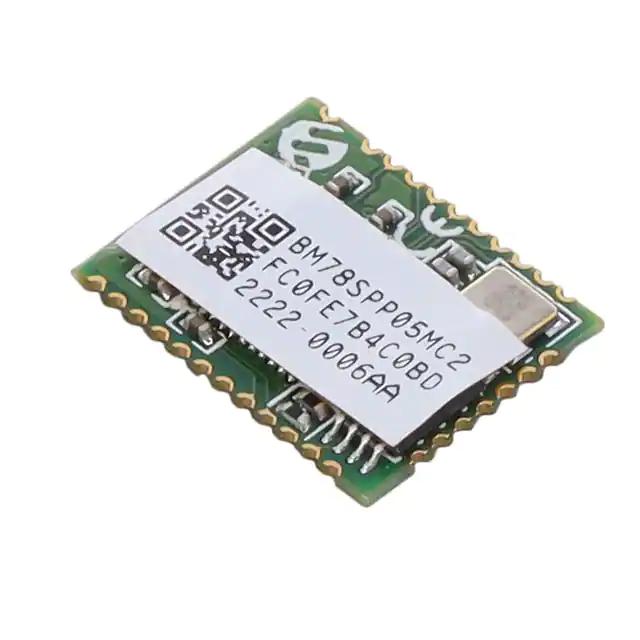 This is manufactured by Microchip Technology. The manufacturer part number is BM78SPP05MC2-0006AA. It is assigned with possible HTSUS value of 8517.62.0090. The product is rohs3 compliant. The product has -20°c ~ 70°c operating temperature range. It holds a typical memory size of 4mb flash, 320kb rom, 28kb sram. Moreover, the product comes in [Package/ Case]. It carries 43ma transmission current. The current receiving of the product is 37ma. In addition, it is reach unaffected. It has a maximised data speed rate of 115.2kbaud. It is shipped in tray. Its typical moisture sensitivity level is 1 (unlimited). The standard RF Family of the product includes bluetooth. It has a long 16 weeks standard lead time. The product features a bluetooth v5.0 dual mode protocol. The product is available in surface mount configuration. It is a antenna not included antenna. The sensitivity given includes -92dbm. It features i²c, uart serial interface. Supplied with 2.4ghz of frequency. It has optimum voltage supply of 3.3v ~ 4.2v. The product has an output power 2dbm. Moreover, it corresponds to bm78, a base product number of the product. The product is designated with the 5a992c code number