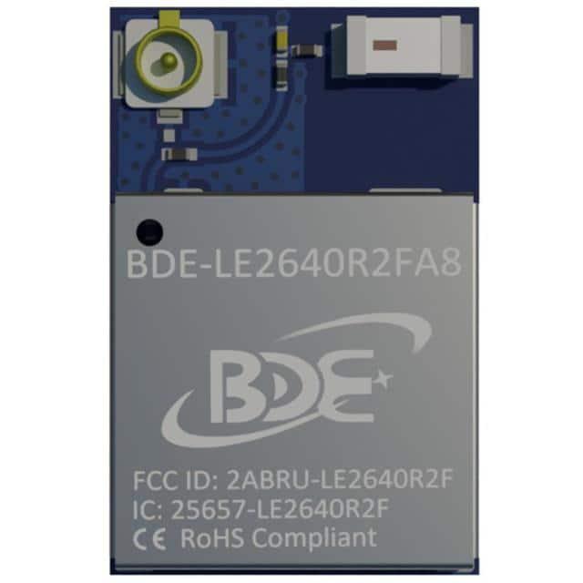 This is manufactured by BDE Technology. The manufacturer part number is BDE-LE2640R2FA8. It is assigned with possible HTSUS value of 8517.62.0090. The product is rohs compliant. The product has -40°c ~ 85°c operating temperature range. It holds a typical memory size of 128kb + 1024kb flash, 20kb sram. Moreover, the product comes in [Package/ Case]. It carries 6.1ma ~ 9.1ma transmission current. The current receiving of the product is 5.9ma ~ 6.1ma. Features gfsk modulation. In addition, it is reach unaffected. It has a maximised data speed rate of 2mbps. It is shipped in tape & reel (tr). Its typical moisture sensitivity level is 3 (168 hours). The standard RF Family of the product includes bluetooth. The product features a bluetooth v5.0 protocol. Additionally, [Utilised IC / Part] is the used part of the product. The product is available in surface mount configuration. It is a integrated, chip antenna. The sensitivity given includes -97dbm. It features i²c, i²s, jtag, spi, uart serial interface. Supplied with 2.4ghz of frequency. It has optimum voltage supply of 1.8v ~ 3.8v. The product has an output power 5dbm.