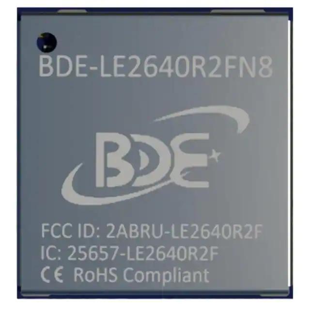 This is manufactured by BDE Technology. The manufacturer part number is BDE-LE2640R2FN8. It is assigned with possible HTSUS value of 8517.62.0090. The product is rohs compliant. The product has -40°c ~ 85°c operating temperature range. It holds a typical memory size of 128kb + 1024kb flash, 20kb sram. Moreover, the product comes in [Package/ Case]. It carries 6.1ma ~ 9.1ma transmission current. The current receiving of the product is 5.9ma ~ 6.1ma. Features gfsk modulation. In addition, it is reach unaffected. It has a maximised data speed rate of 2mbps. It is shipped in tape & reel (tr). Its typical moisture sensitivity level is 3 (168 hours). The standard RF Family of the product includes bluetooth. The product features a bluetooth v5.0 protocol. Additionally, [Utilised IC / Part] is the used part of the product. The product is available in surface mount configuration. It is a integrated, chip antenna. The sensitivity given includes -97dbm. It features i²c, i²s, jtag, spi, uart serial interface. Supplied with 2.4ghz of frequency. It has optimum voltage supply of 1.8v ~ 3.8v. The product has an output power 5dbm.