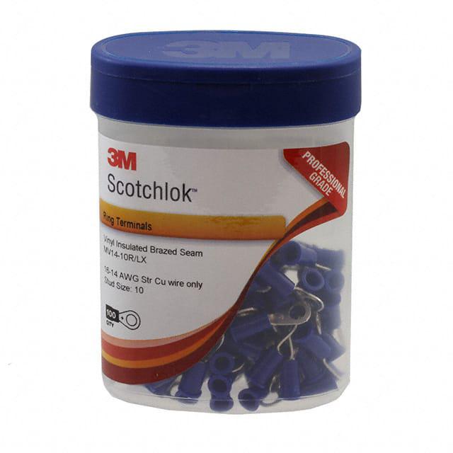 This is manufactured by 3M. The manufacturer part number is MV14-10R/LX-BOTTLE. It is assigned with possible HTSUS value of 8536.90.4000. The product is rohs compliant. It is 0.030" (0.76mm) thick. It is designed from highly reliable vinyl insulating material. The product has an integral 0.930" (23.62mm) overall length. In addition, it is reach unaffected. The product's insulation diameter includes 0.170" (4.32mm). The terminal is a circular type. It is shipped in bulk. Moreover, the product has a wire gauge of 14-16 awg. Its outer edges are 0.310" (7.87mm) wide. Furthermore, the product is galvanized with excellent tin contact finishing. Its typical moisture sensitivity level is 1 (unlimited). The product features crimp termination style. It has a long 3 weeks standard lead time. The product consists of 10 stud. The splendid features of the product include brazed seam. The product is available in free hanging (in-line) configuration. It has a classic blue colour. The product scotchlok™, is a highly preferred choice for users. Insulation Option: insulated. The product is designated with the ear99 code number Moreover, it corresponds to mv14, a base product number of the product. The product is made from sturdy copper, etp materials.