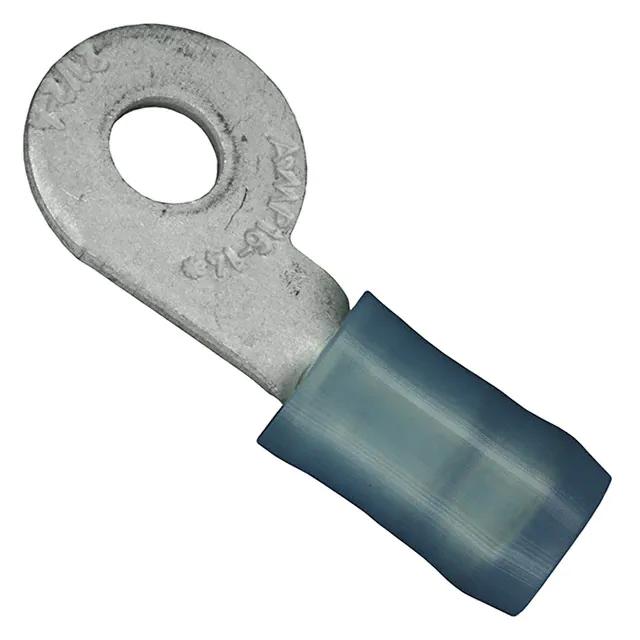 This is manufactured by TE Connectivity AMP Connectors. The manufacturer part number is 323817. It is assigned with possible HTSUS value of 8536.90.4000. The product is rohs3 compliant. It is 0.031" (0.79mm) thick. It is designed from highly reliable polyamide (pa), nylon insulating material. The product has an integral 0.906" (23.01mm) overall length. In addition, it is vendor undefined. The product's insulation diameter includes 0.105" ~ 0.150" (2.67mm ~ 3.81mm). The terminal is a circular type. It is shipped in bulk. Moreover, the product has a wire gauge of 14-16 awg. Its outer edges are 0.375" (9.53mm) wide. Furthermore, the product is galvanized with excellent tin contact finishing. Its typical moisture sensitivity level is 1 (unlimited). The product features crimp termination style. It has a long 28 weeks standard lead time. The product consists of 6 stud. The splendid features of the product include offset holes, serrated termination. The product is available in free hanging (in-line) configuration. It has a classic blue colour. The product pidg, is a highly preferred choice for users. Insulation Option: insulated. The product is designated with the ear99 code number Moreover, it corresponds to 3238, a base product number of the product. The product is made from sturdy copper materials.